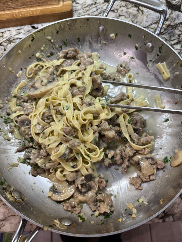 Traditionally associated with central Italy, Fettuccine Boscaiola celebrates simplicity and balance. The wide ribbons of fettuccine are the perfect match for a sauce built on mushrooms, sausage, and a touch of mascarpone. It’s not flashy food — it’s the kind of pasta meant to be enjoyed slowly, preferably at a table filled with conversation.